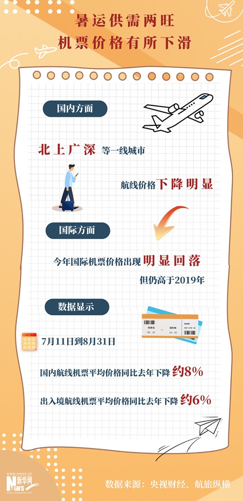 今年民航暑運呈現出“供需兩旺”的格局,國內及國際機票價格都有一定的回落。