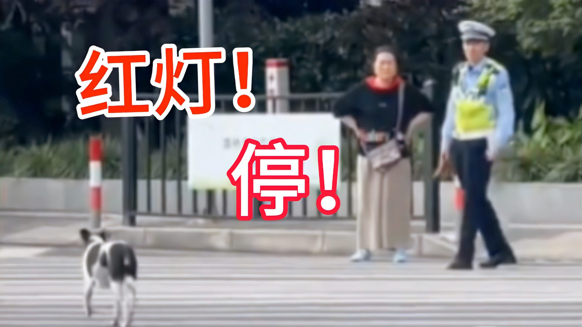 狗狗闖紅燈被交警警告了一下 網友:打電話給警犬讓它管